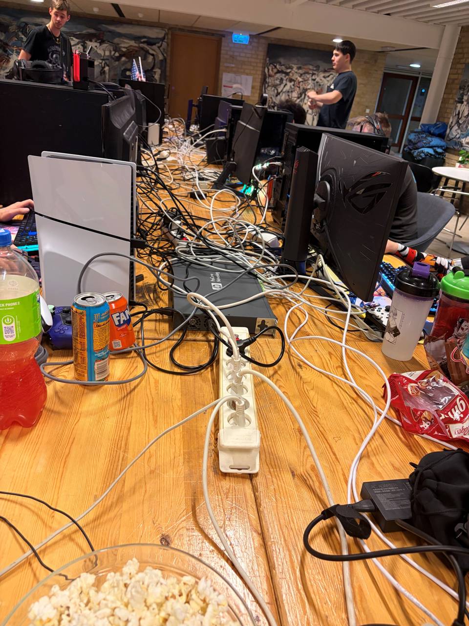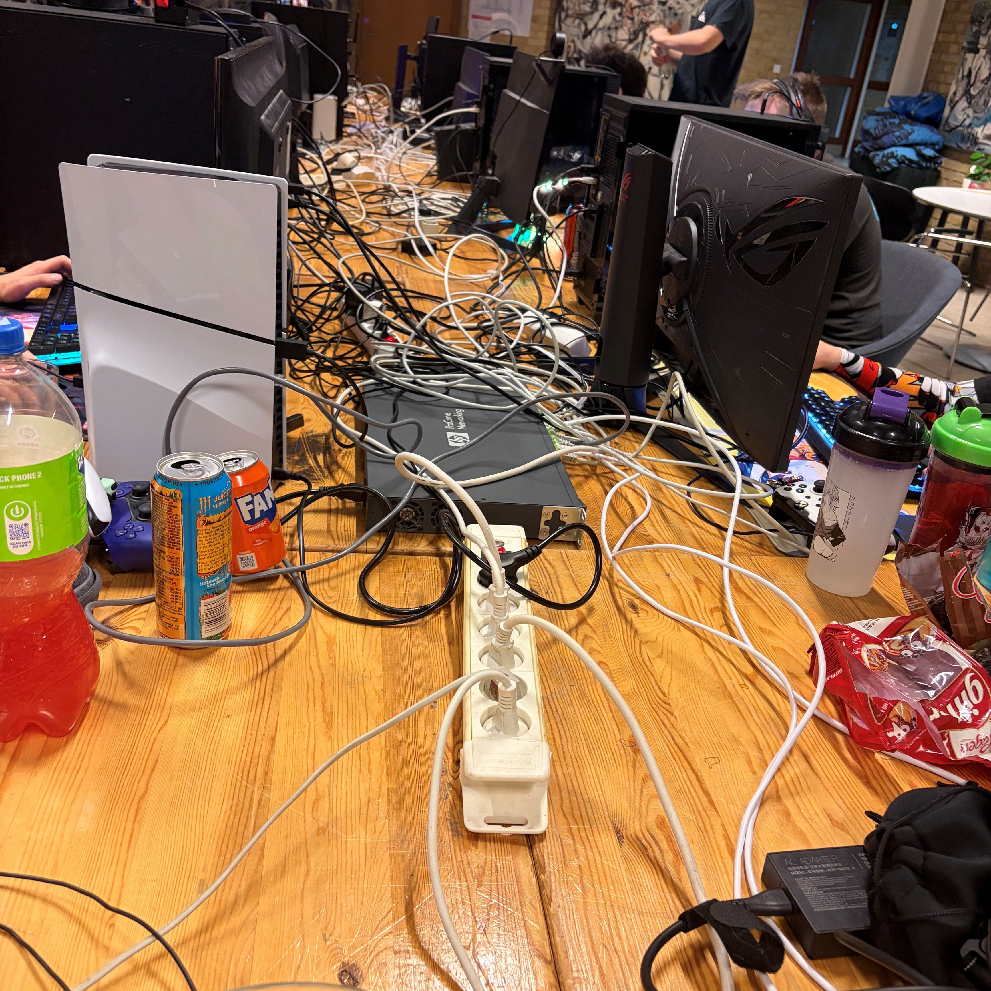 Stemningen var i top, da STU Randers havde forvandlet caféarealet til et gamerlokale og inviteret 15 nuværende elever til en aften og nat fyldt med hygge, gaming og fællesskab. Der blev spillet en masse forskellige spil på computerne, som for eksempel Guild War, Roblox osv.
