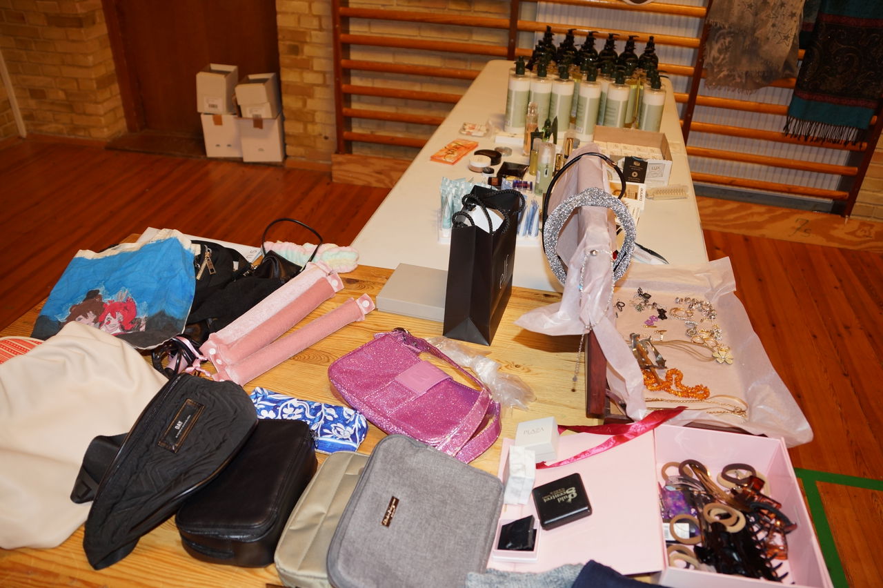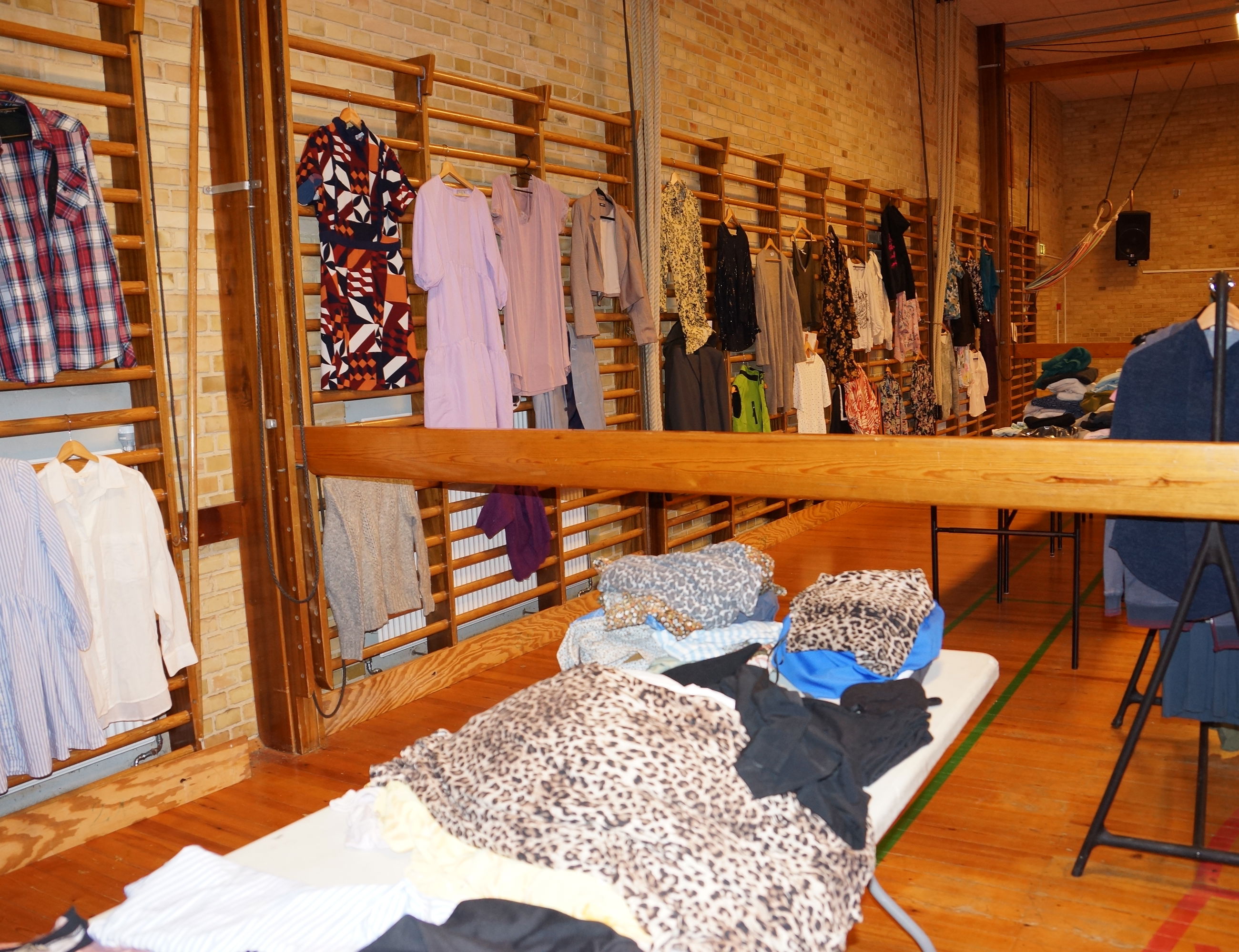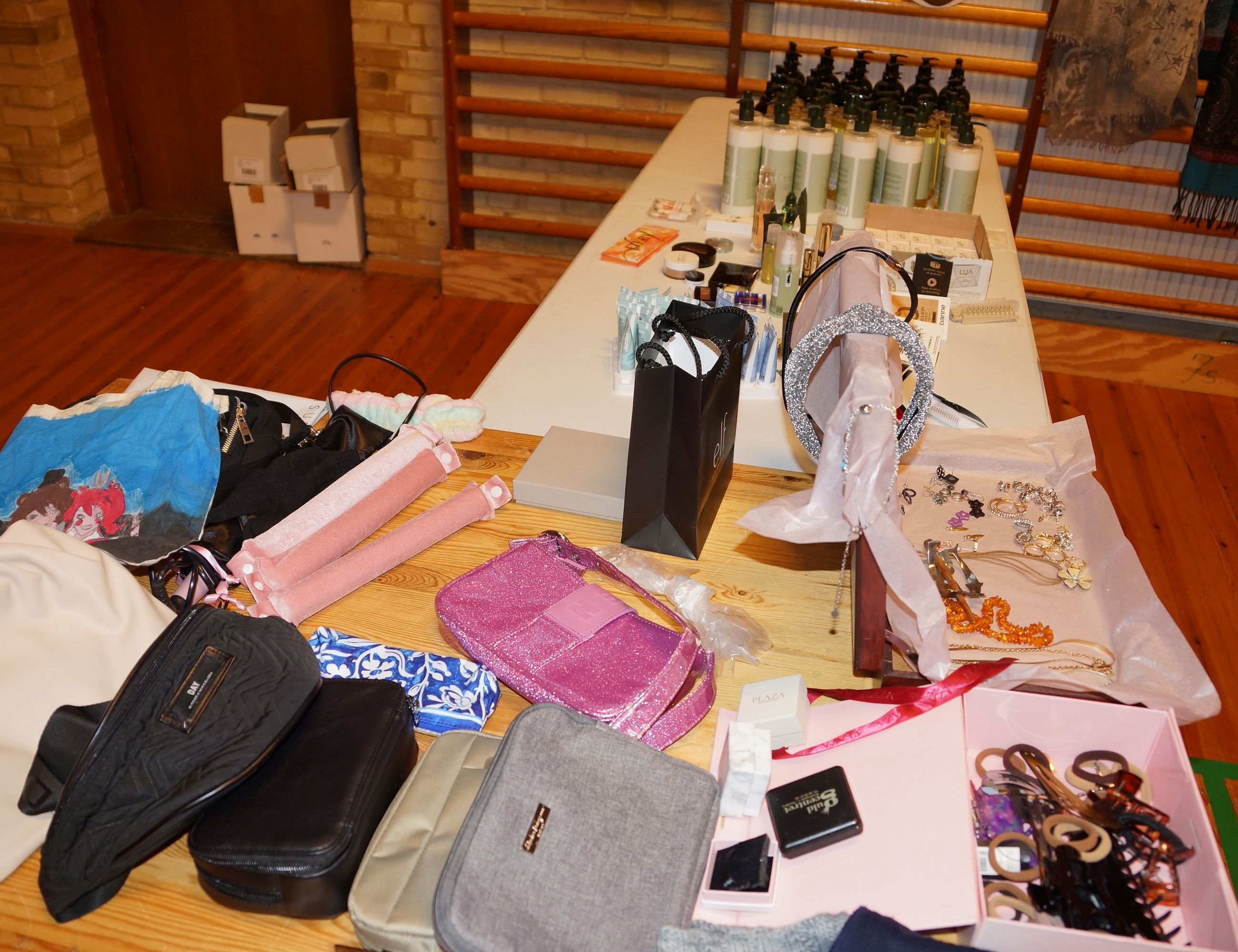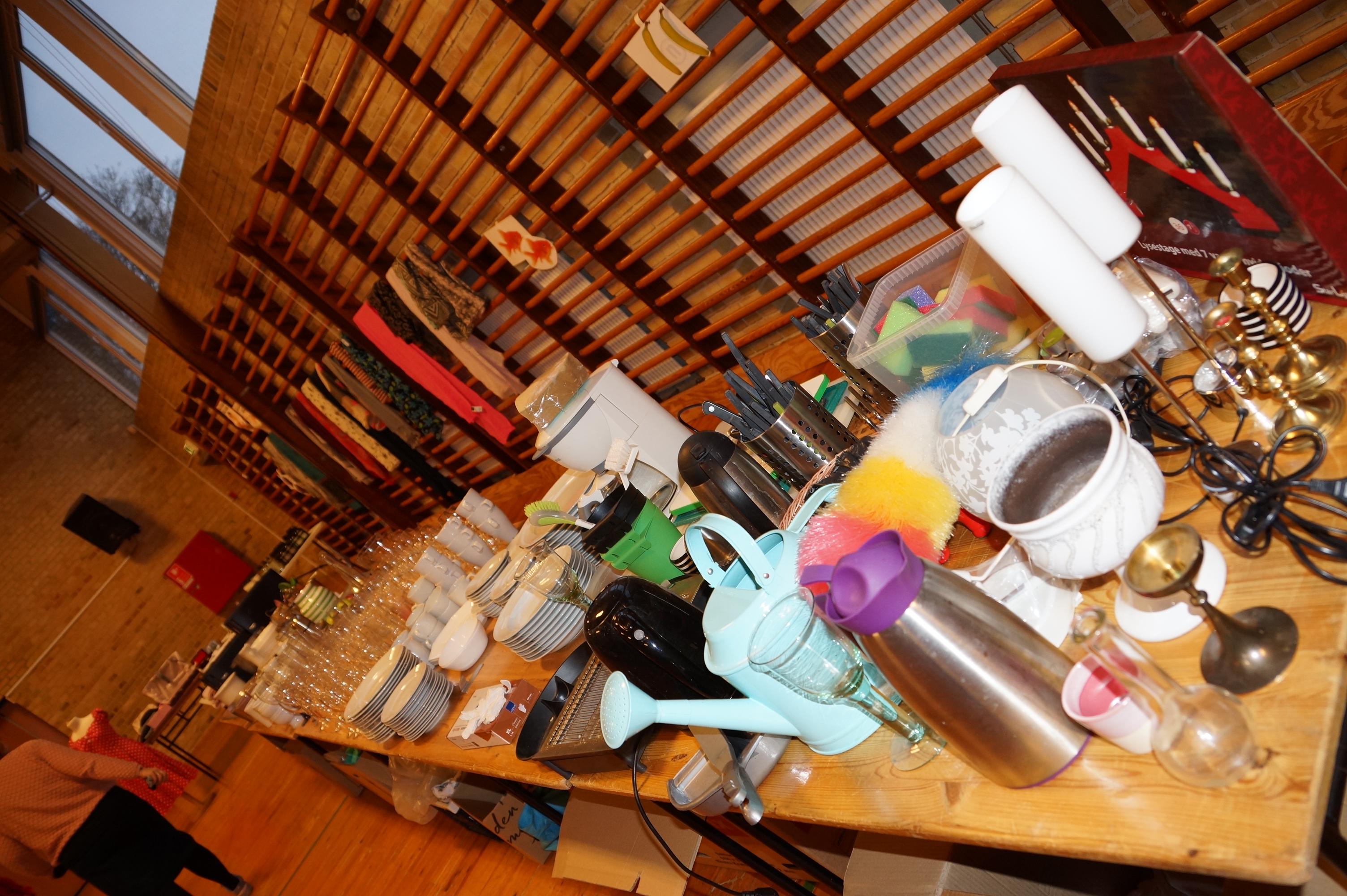 Bordene bugnede af tøj doneret af både elever og personale, og derudover var der også et udvalg af køkkenudstyr, badeartikler og andre ting, som var blevet givet til STU Randers.